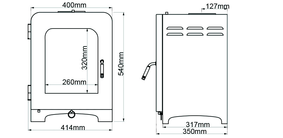 Finished in black high temperature paint which we source from the USA and with thermo-ceramic clear glass from the industry-leading "Schott" brand in Germany.