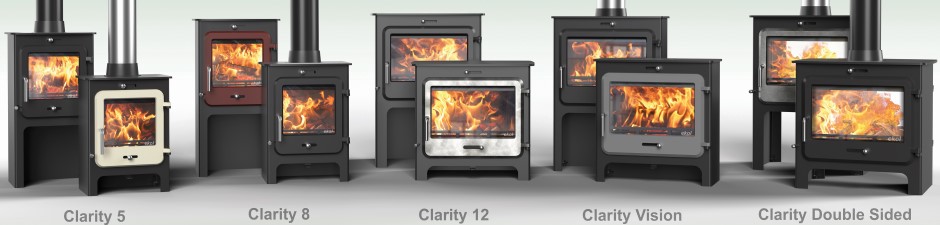 Clarity range - clean lines, thick steel-bodied, with cast iron door