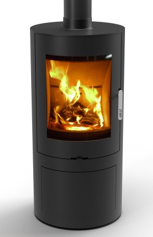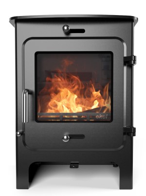 Ekol's first cylindrical stove. 5kW heat output with an impressively large curved glass window showing off amazing views of the fire, this tall, modern-looking stove complements the corner or the centrepiece of any living room.