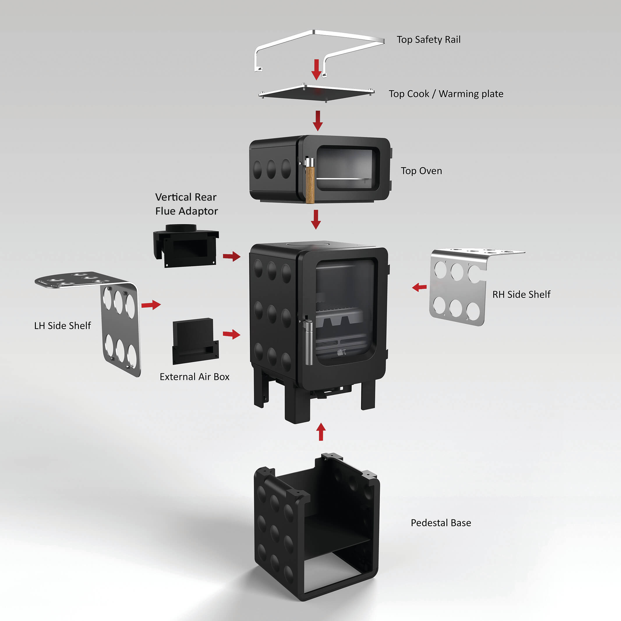 With its individual styling and multiple cooking options including stainless cooktop, top baking oven, pan supports to one or both sides as well as griddle plate and pizza shelf inside, the ApplePie is the ‘Swiss Army Knife’ of wood burning stoves.