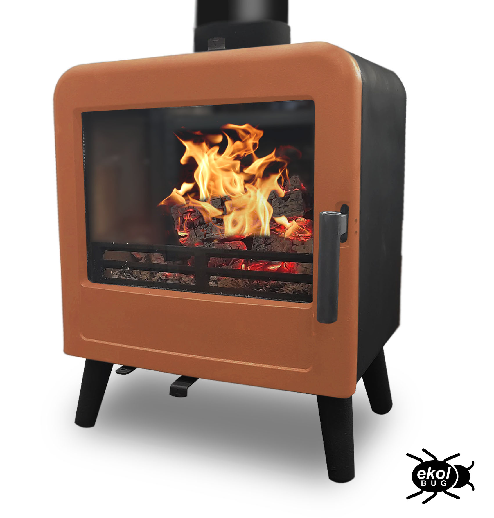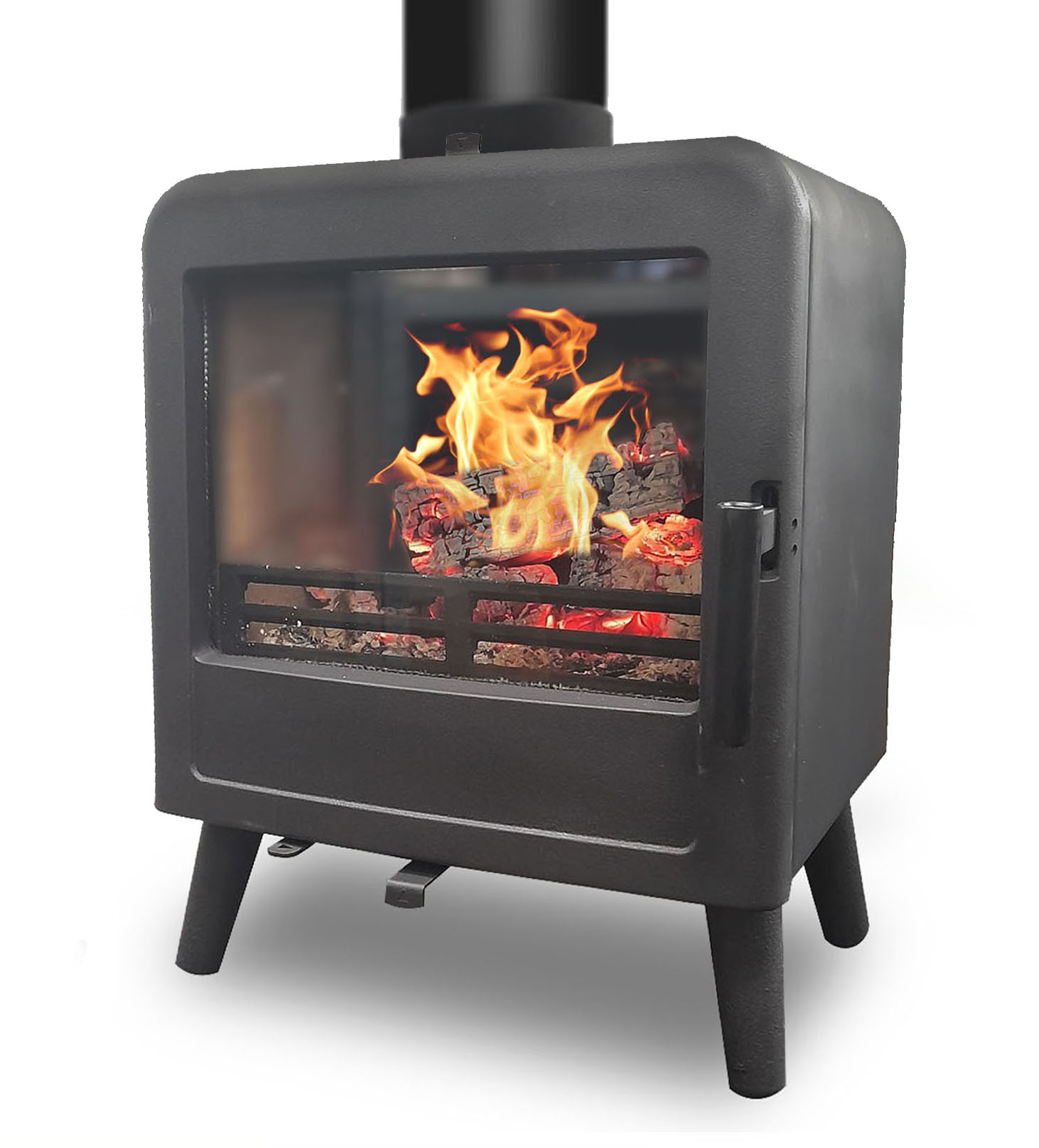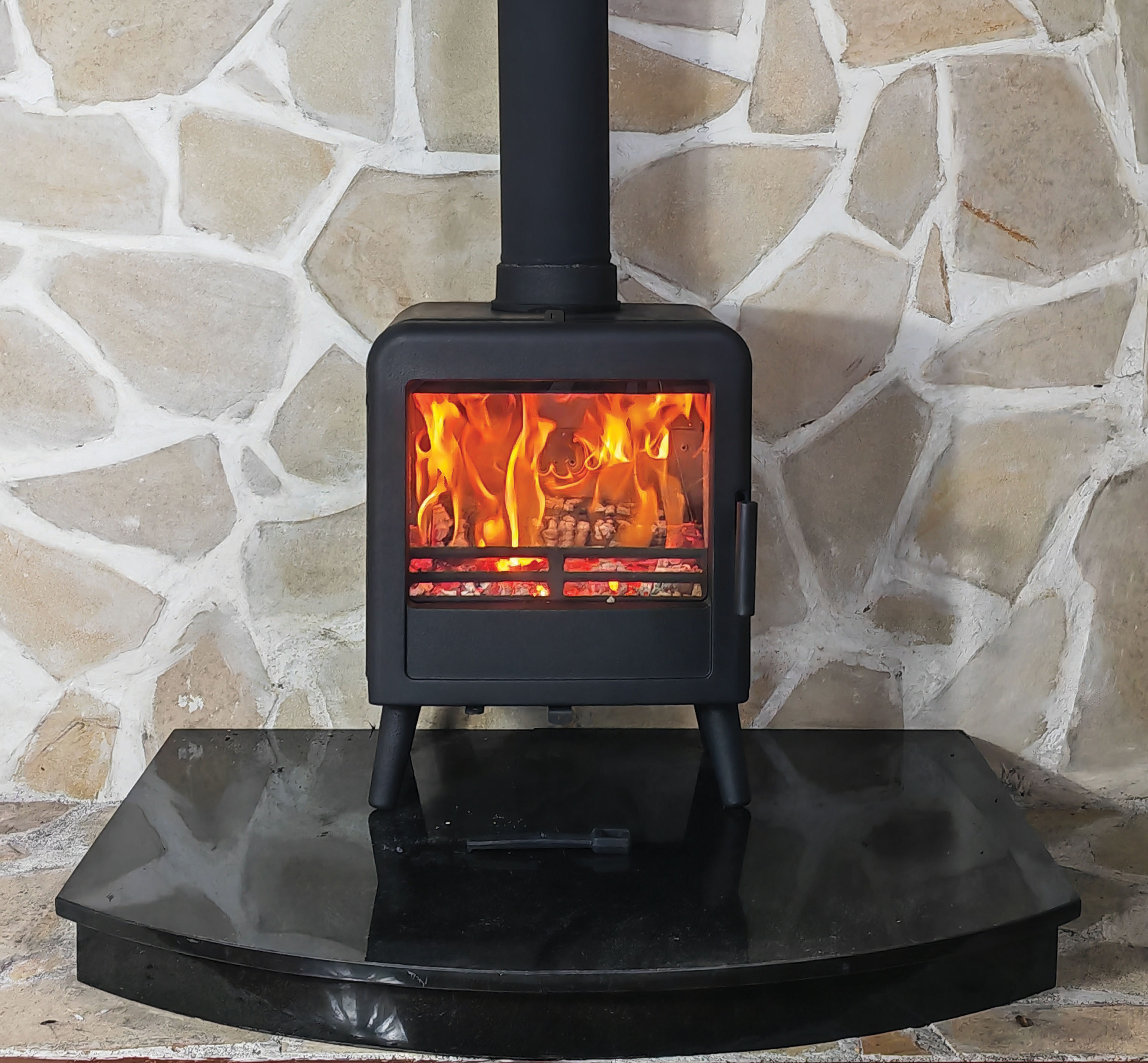 A retro styled 5kW multifuel stove with steel body and cast iron door.