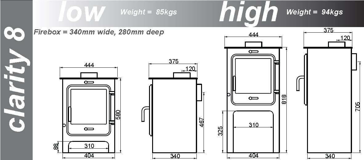 The Clarity range are a State-Of-the Art Hybrid stove, using the ultimate combination of heavy cast iron inner components along with dense refractory firebrick linings and precision engineered outer steel shell up to 10mm thick.